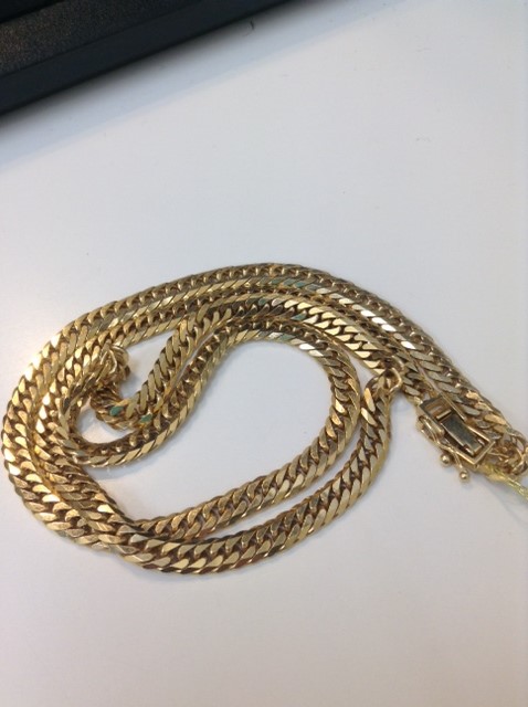 本日はK18喜平ネックレスを買取しました。重さは重量感あふれる98.8gとなっております。ぜひ、店頭でごらんください。ご来店お待ちしております。