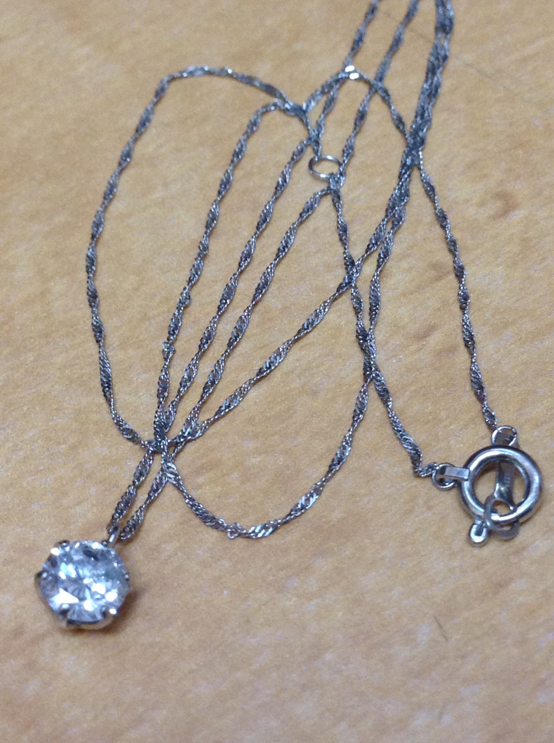ダイヤモンドが綺麗なプラチナ素材のネックレスをお買取りしました。ダイヤモンドなど宝石を売却する際はお掃除をしてお持ちいただくことをお勧めします。査定する際、宝石の第一印象はかなり重要なポイントになってきます!!