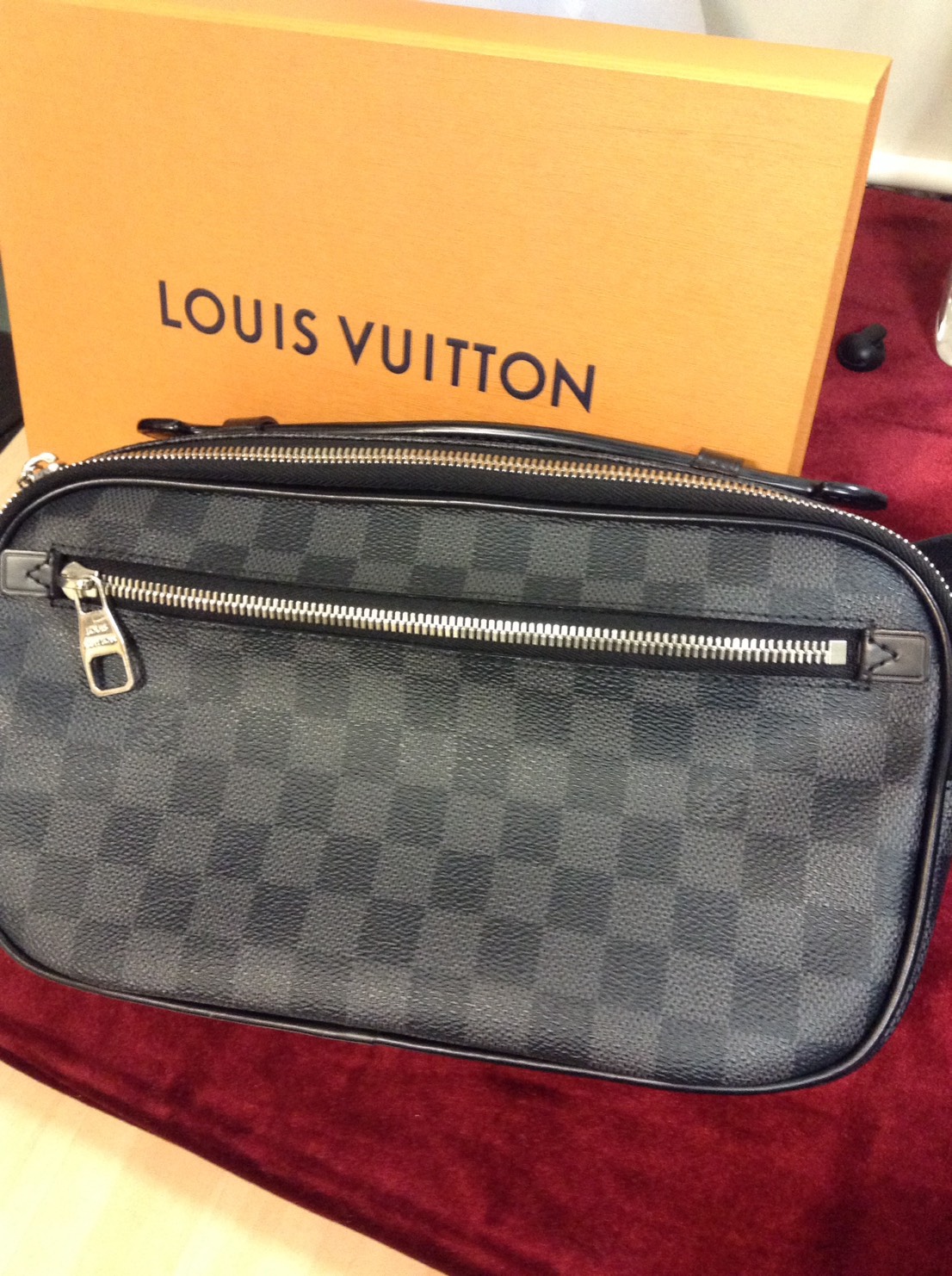 ルイヴィトンのショルダーバッグ、ダミエグラフィットのアンブレールを買い取らせて頂きました。ショルダー部分をオープンポケットにしまえば、ハンドバッグとして御使用も可能ですよー!?