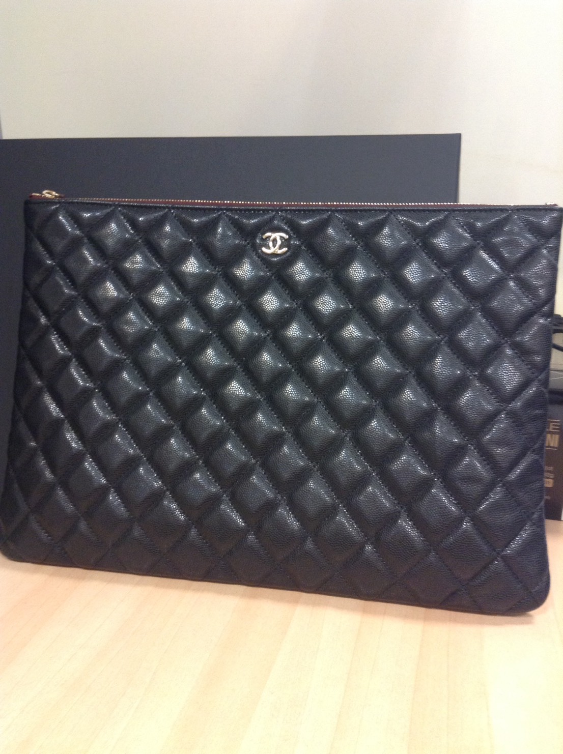 今回、シャネルの現行モデル、クラシックポーチを高額買取させていただきました。