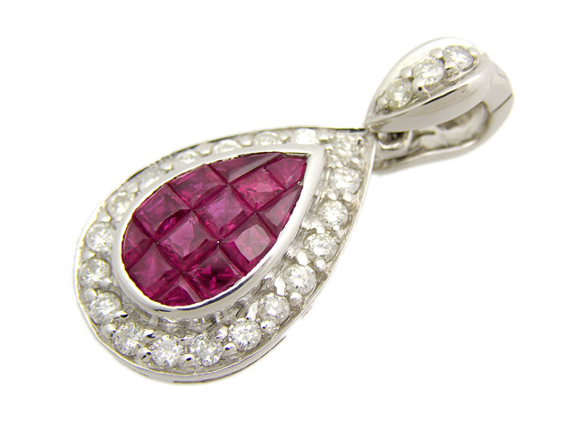 ・18金ホワイトゴールド(K18WG)ルビーダイヤモンドペンダントトップ5.7g