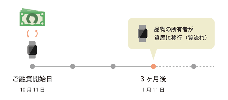 3ヶ月のご融資期間内に返済または質料のお支払いがない場合、お預かりした品物の所有者が質屋に移行します。